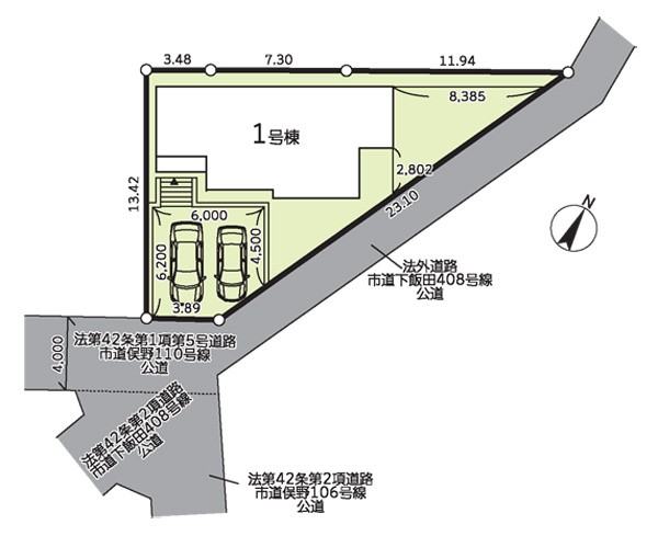 | 駐車場 | 2台 | 道路の幅員 | :南東4m |