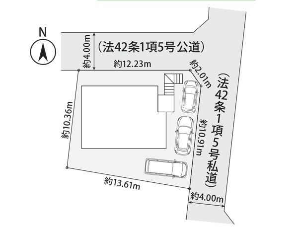 | 駐車場 | - | 道路の幅員 | :北西4m 北東4m |