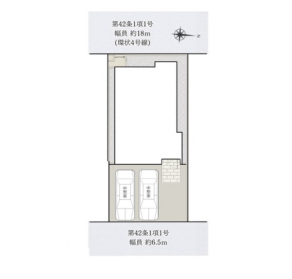 | 駐車場 | 2台 | 道路の幅員 | :西18m 東6.5m |
