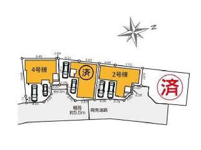 | 駐車場 | 2台 | 道路の幅員 | 2号棟:東5.5m |