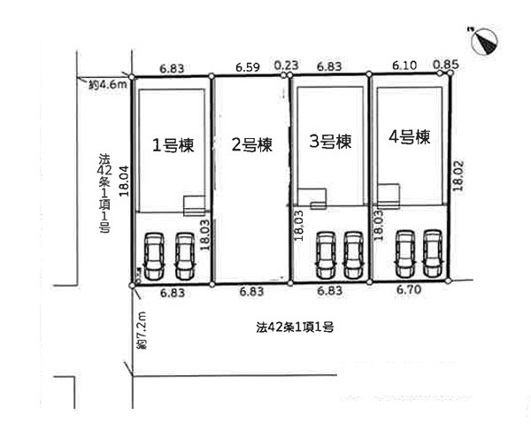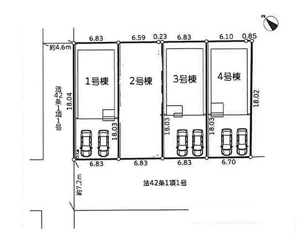 | 駐車場 | 2台 | 道路の幅員 | 4号棟:南西7.2m /3号棟:南西7.2m /1号棟:南西7.2m 北西4.6m |