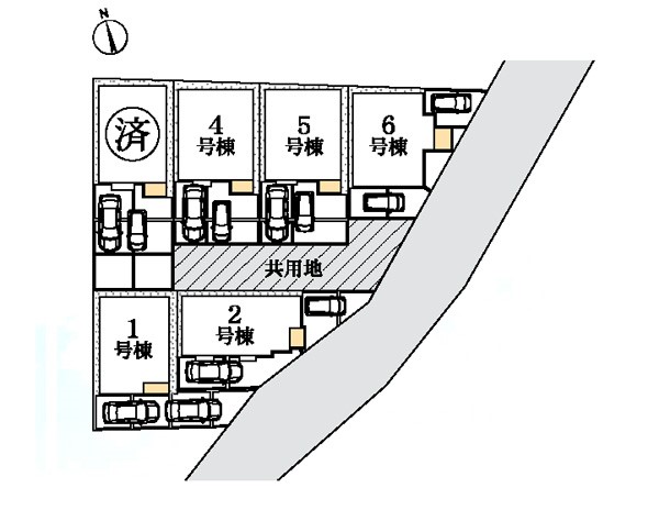 | 駐車場 | 2台 | 道路の幅員 | 5号棟:南東6m /2号棟:南東6m /1号棟:南東6m /4号棟:南東6m /6号棟:南東6m |