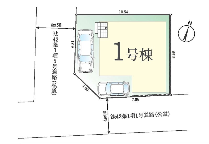 | 駐車場 | 2台 | 道路の幅員 | 1号棟:南4m 西4.5m |