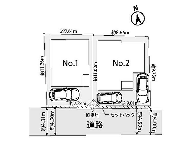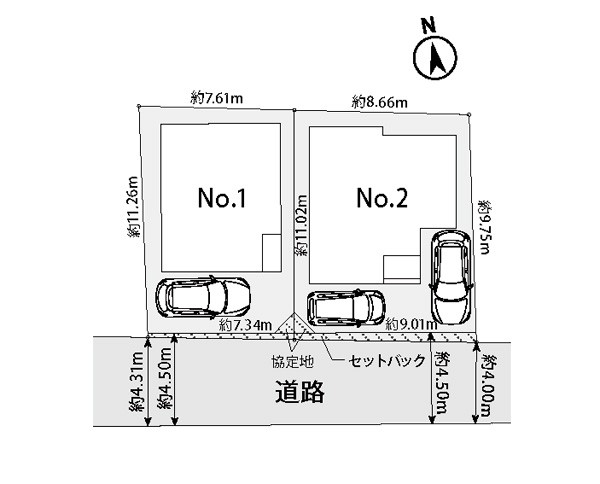 | 駐車場 | 1台 ~ 2台 | 道路の幅員 | 1号棟:南4.5m /2号棟:南4.5m |