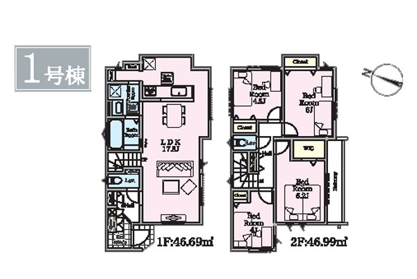 1号棟 間取り 4LDK 価格 4380万円 建物面積 93.68m2 土地面積 100.03m2 -