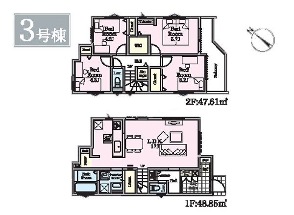 3号棟 間取り 4LDK 価格 4280万円 建物面積 96.46m2 土地面積 100.45m2 -