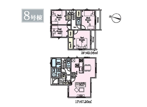 8号棟 間取り 4LDK 価格 3980万円 建物面積 96.26m2 土地面積 126.8m2 -