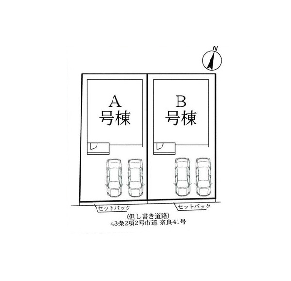 | 駐車場 | 2台 | 道路の幅員 | A号棟:南4m |