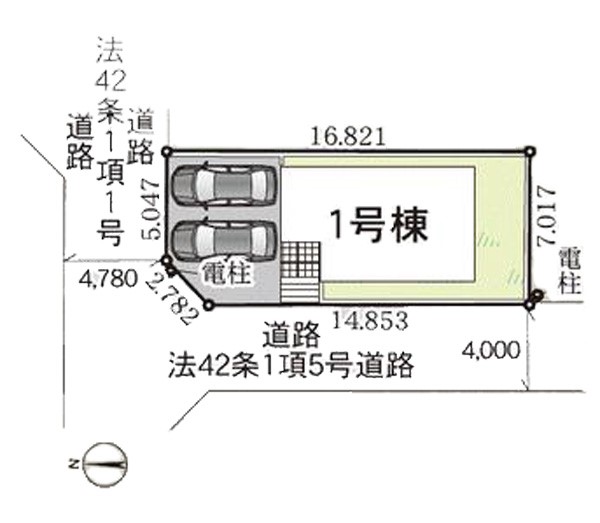 | 駐車場 | 2台 | 道路の幅員 | :北4.7m 西4m |