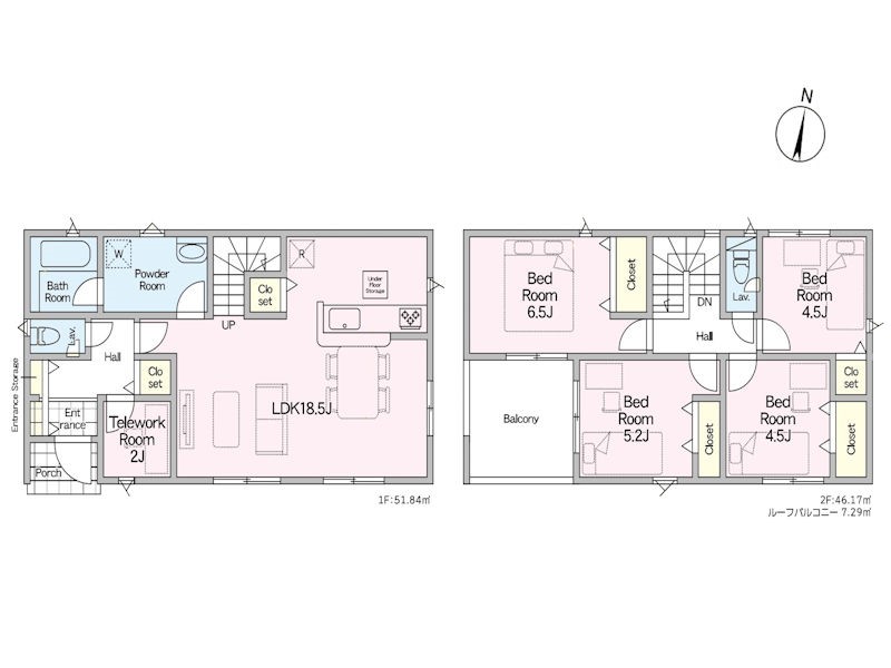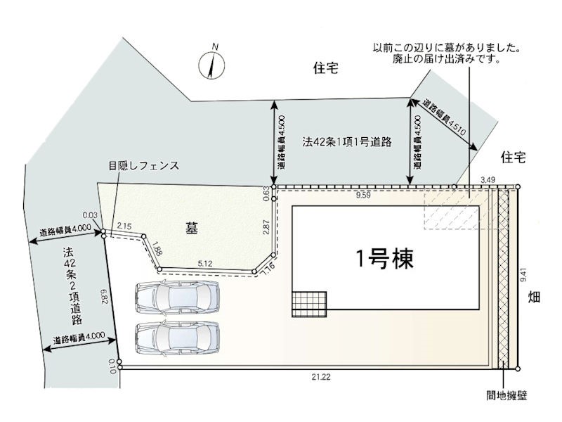 | 駐車場 | 2台 | 道路の幅員 | 1号棟:北4.5m 西4m |