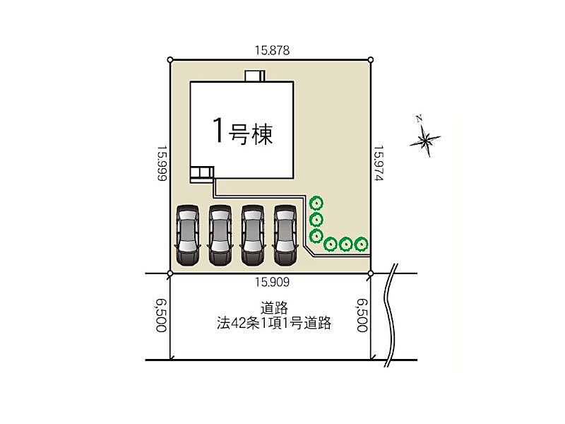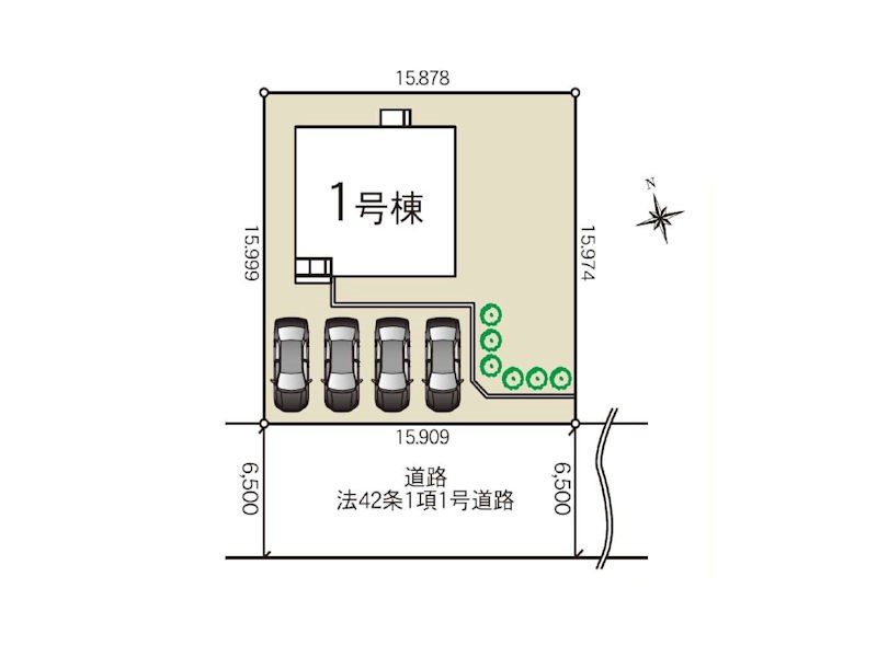 | 駐車場 | 4台 | 道路の幅員 | :南西6.5m |