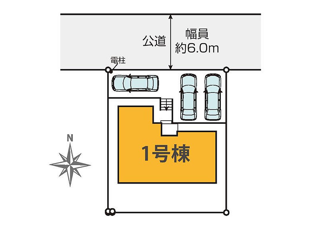 | 駐車場 | 3台 | 道路の幅員 | 1号棟:北6m |