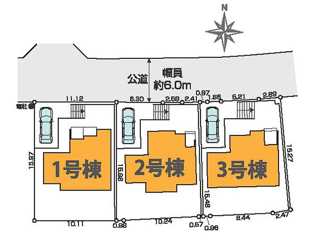 | 駐車場 | 1台 | 道路の幅員 | 3号棟:北6m |
