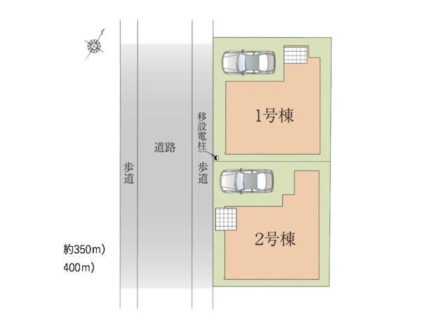| 駐車場 | 1台 | 道路の幅員 | 1号棟:南西7.2m /2号棟:南西7.2m |