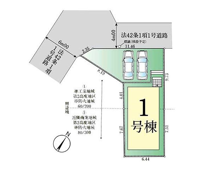 | 駐車場 | 2台 | 道路の幅員 | :北西4m |