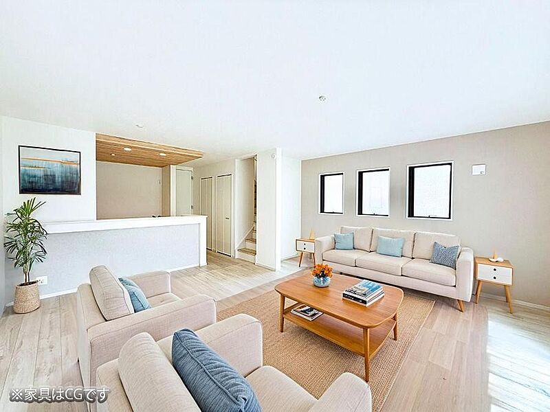 - ※完成予想図やCG合成画像は、門塀・植栽・庭・外観等、実際とは多少異なる場合があります。