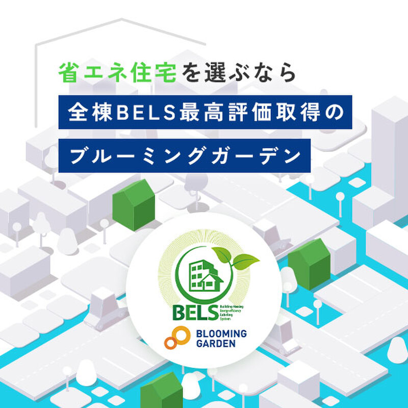 BELS(ベルス)とは、建物や住宅の省エネ性能をわかりやすく表示したもの。5段階評価で全棟最高評価(ZEH基準相当)を取得しています。屋根や外壁、窓などの断熱性能が高く、冷暖房、照明、給湯などのエネルギー消費量を抑えた住宅です。