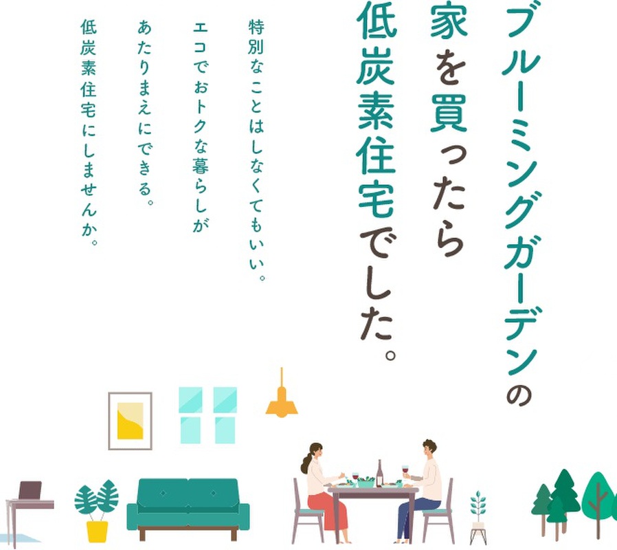 CO2排出量が少ない住宅のことです。日々の生活や行動によって発生するCO2の排出を減らし、少ないエネルギーで快適に生活。環境にも家計にも優しい、心と暮らしを豊かにする住宅です。