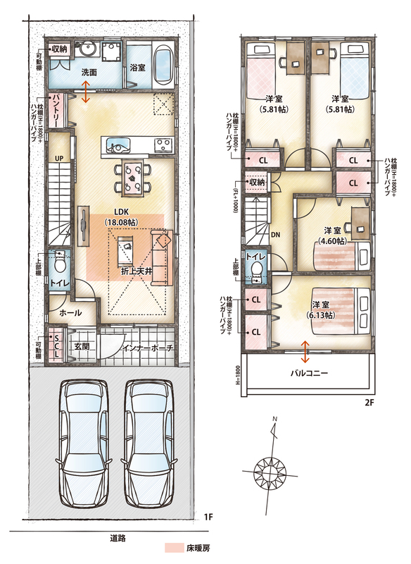 - ※完成予想図やCG合成画像は、門塀・植栽・庭・外観等、実際とは多少異なる場合があります。