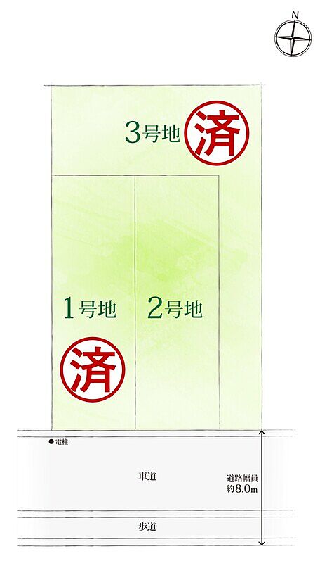 「敷地約30坪~43坪/全3区画」幅員8m超え南側公道に接道。