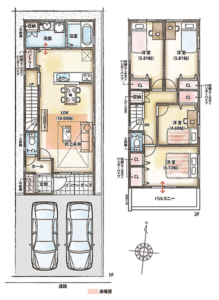 お車2台を並列駐車でき、来客時にも重宝します(車種による)