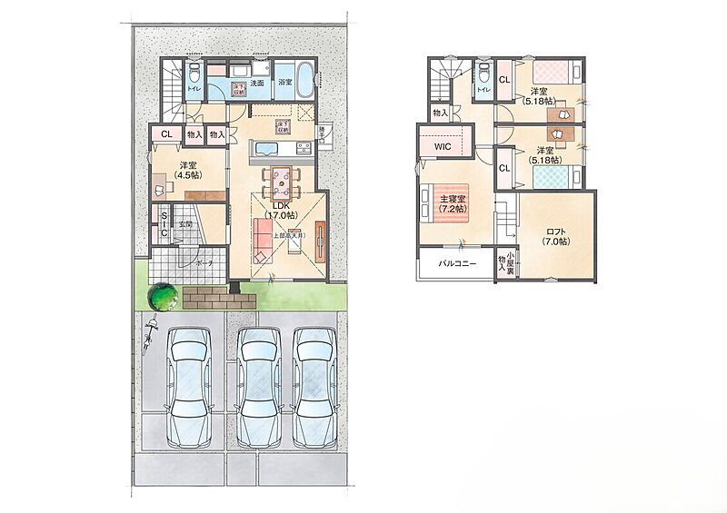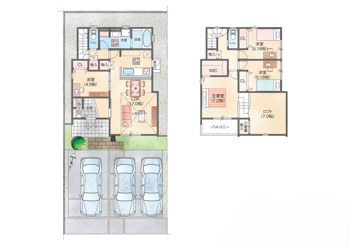 - ※完成予想図やCG合成画像は、門塀・植栽・庭・外観等、実際とは多少異なる場合があります。
