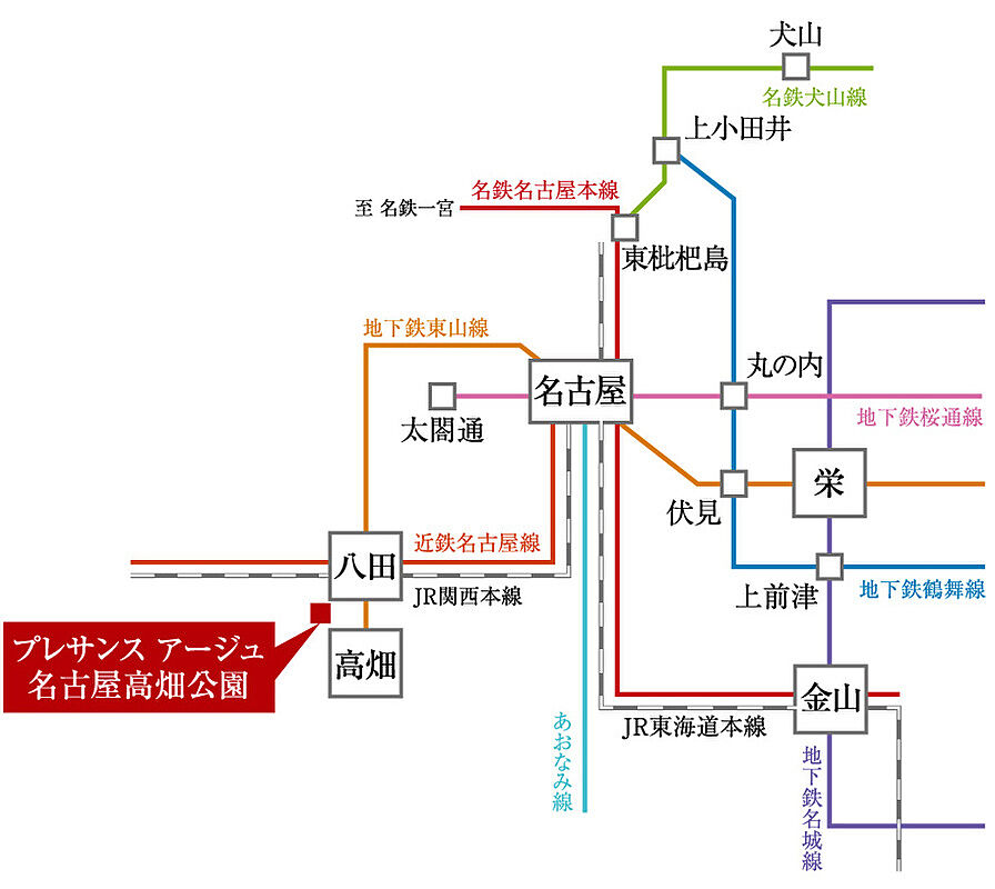 名古屋市営東山線「高畑」駅 徒歩4分 名古屋市営東山線「八田」駅 徒歩11分 JR関西本線「八田」駅 徒歩13分 |