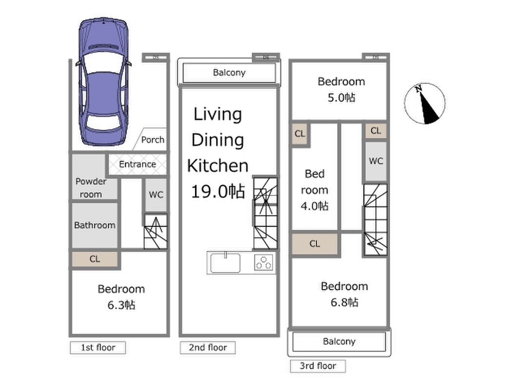 | 間取り | 4LDK | 建物構造 | 木造2階建、木造3階建 |