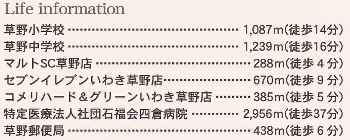 JR常磐線「草野」駅 徒歩12分 バス乗車2分 |