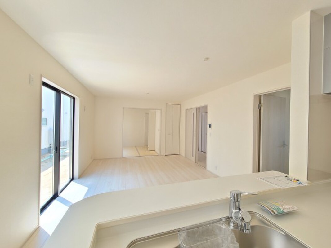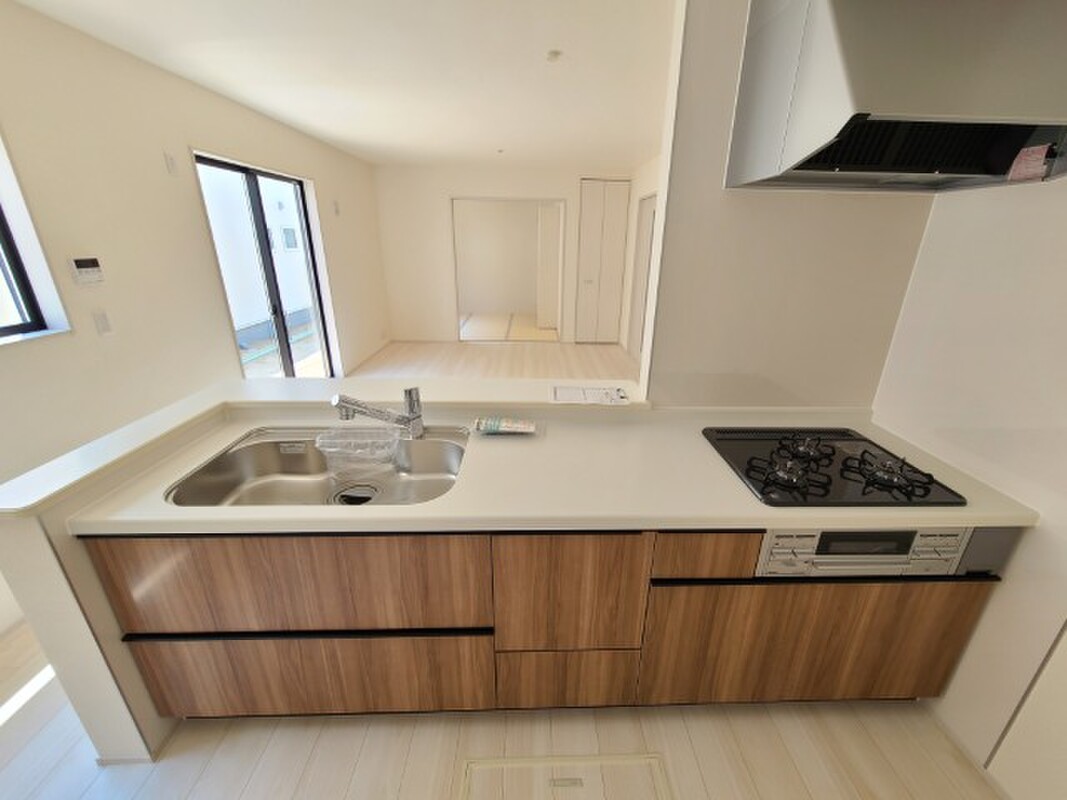対面キッチンなので、家族との会話を楽しみながらお料理ができます!またリビングを見渡せるので、小さいお子様の様子を見ながら家事が出来るのも魅力のひとつです。