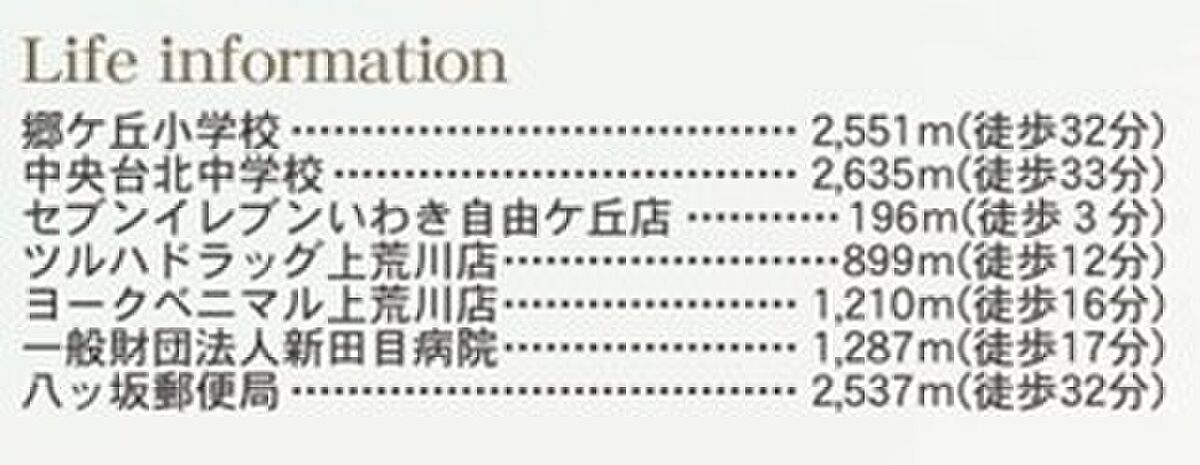 - ※物件から周辺のお店・施設までの距離は、利用が想定される道路を通行した場合の距離です。なお、必ずしも最短距離を保証するものではありません。
