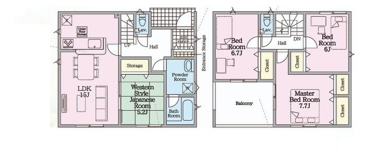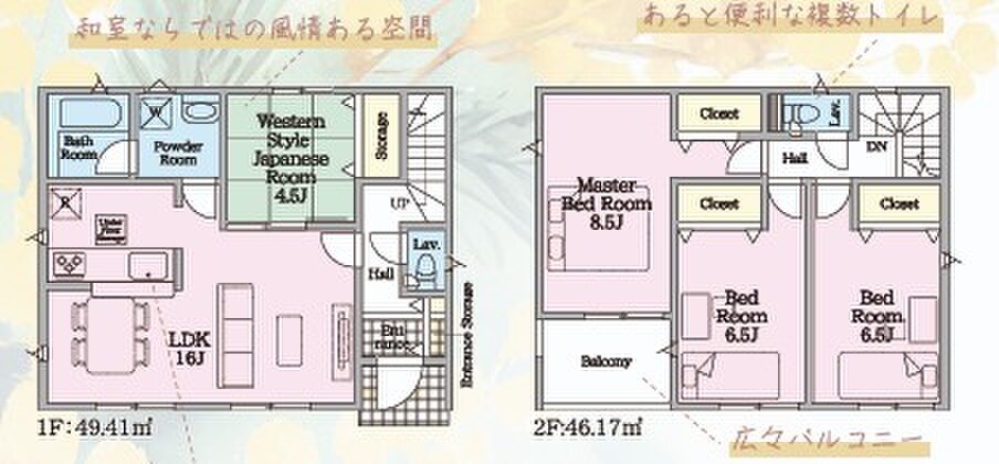 | 建物面積 | 94.77m2(28.66坪)~97.19m2(29.40坪) | 土地面積 | 153.68m2(46.48坪)~211.75m2(64.05坪) |