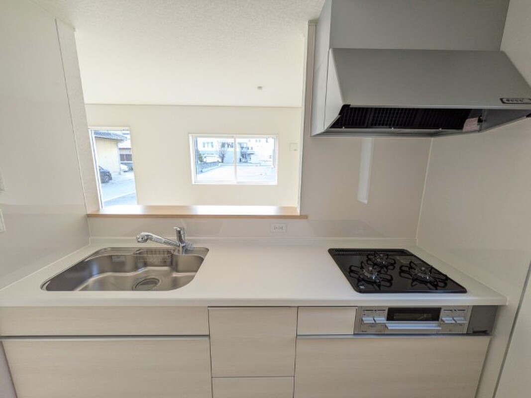 対面式システムキッチンは使い勝手も良く、リビングを見渡せるので小さなお子様やペットがいるご家庭に人気の間取りです。