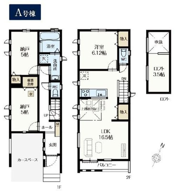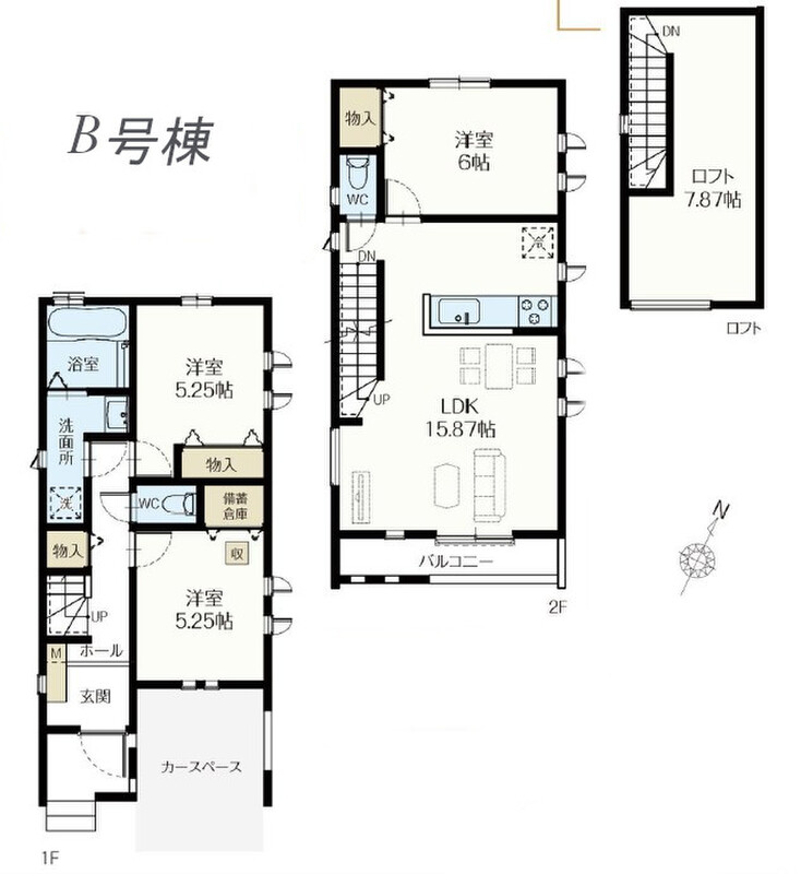 3LDK、ロフト付。収納豊富ですっきりとした暮らしを実現。