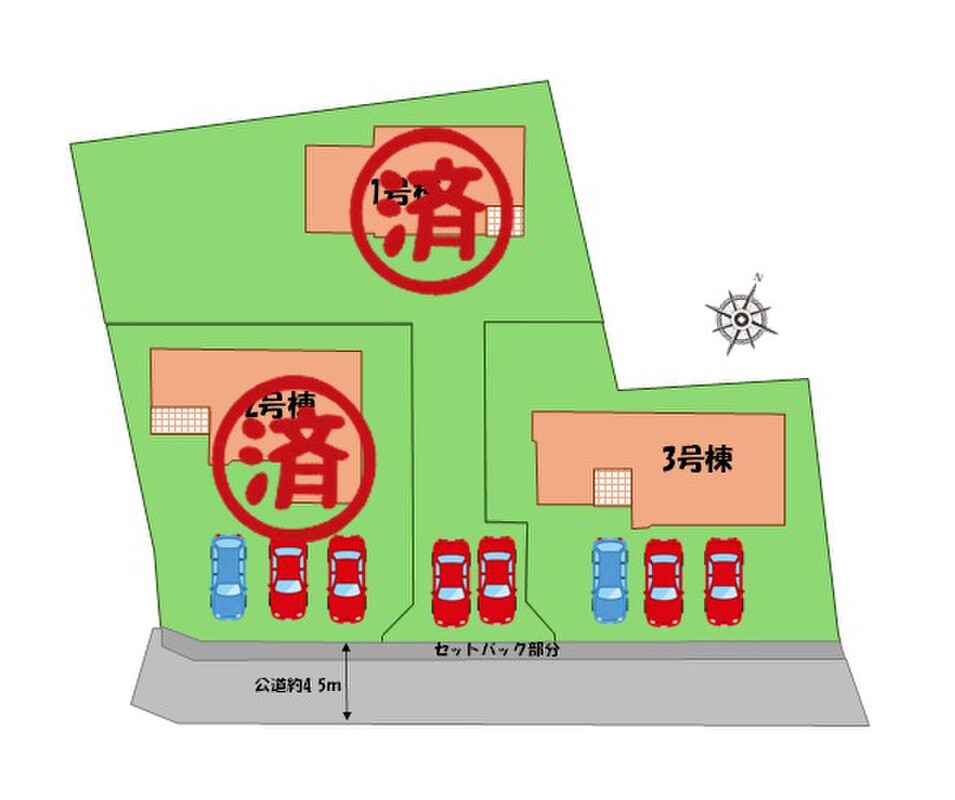 | 駐車場 | 3台 | 道路の幅員 | 道路幅:4.5m、アスファルト舗装、南東側、公道 |