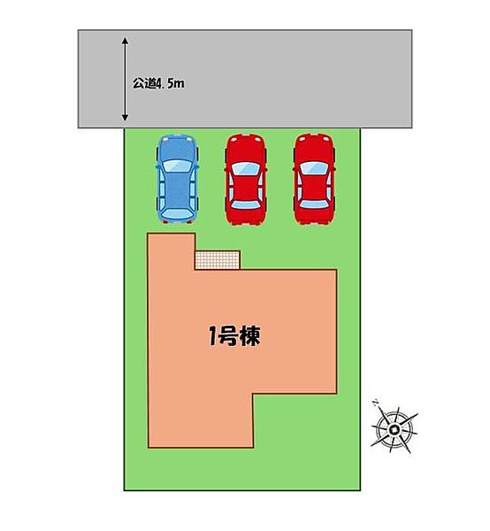 | 駐車場 | 3台(並列駐車3台可(車種による)) | 道路の幅員 | 道路幅:4.5m、アスファルト舗装、北東側、公道 |