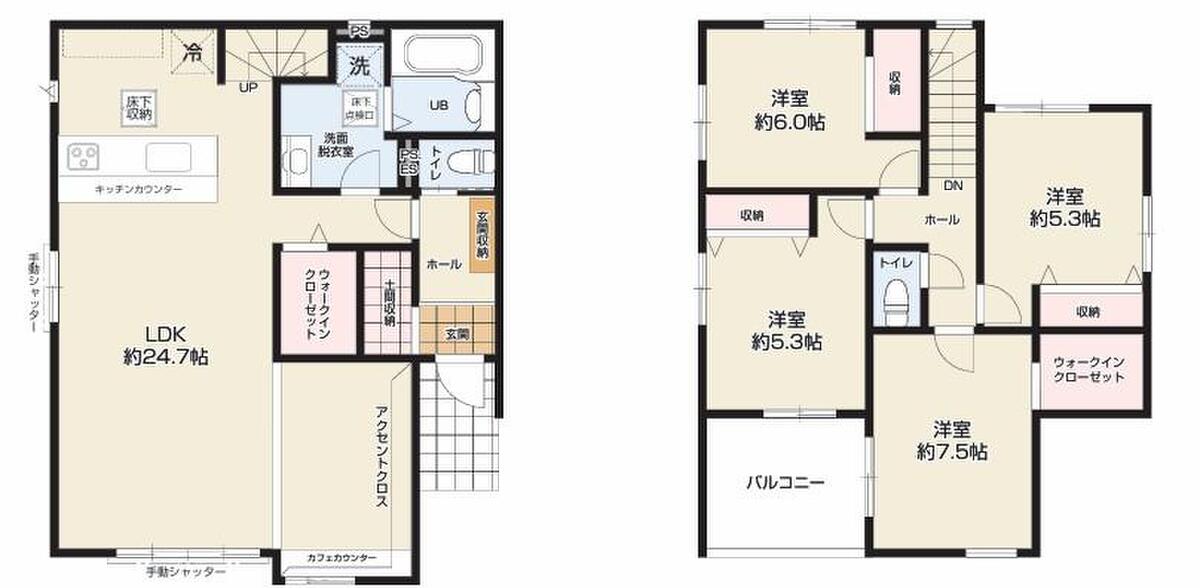 床下収納、食器洗浄乾燥機、24時間換気、ダウンライト、駐車3台可等