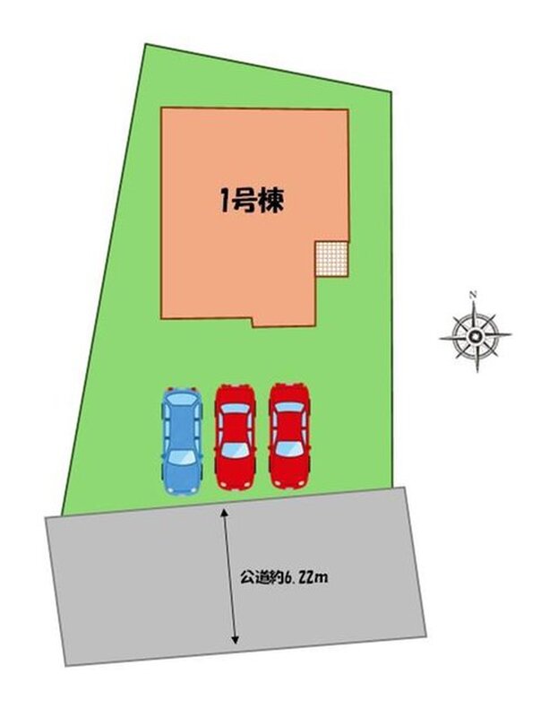 | 駐車場 | 2台 ~ 3台 | 道路の幅員 | 道路幅:6.2m、アスファルト舗装、南側、公道 |