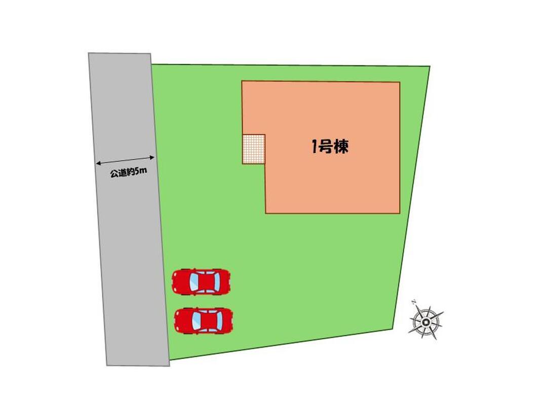 | 駐車場 | 2台(車種による) | 道路の幅員 | 道路幅:5m、アスファルト舗装、北西側、公道 |