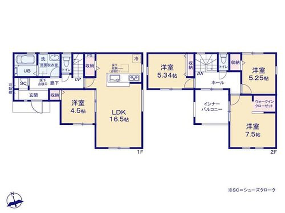 1号棟 間取り 4LDK 価格 2290万円 建物面積 109.3m2 土地面積 207.48m2 -