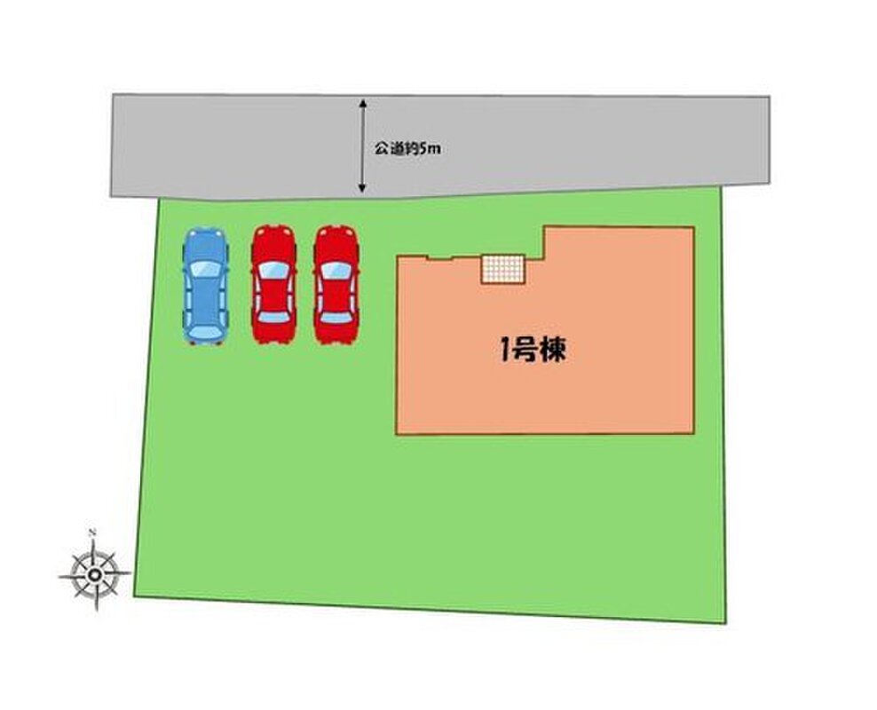 | 駐車場 | 3台(※車種による) | 道路の幅員 | 道路幅:5m、アスファルト舗装、北側、公道 |