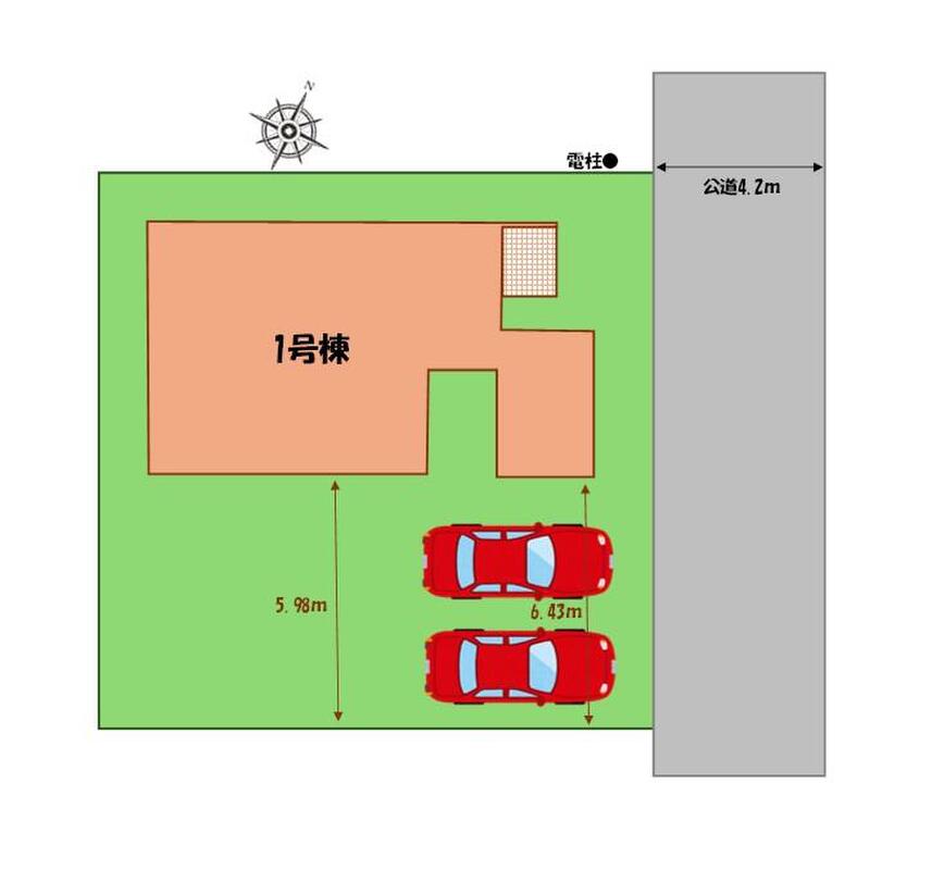 | 駐車場 | 2台(車種による) | 道路の幅員 | 道路幅:4m、アスファルト舗装、東側、公道 |