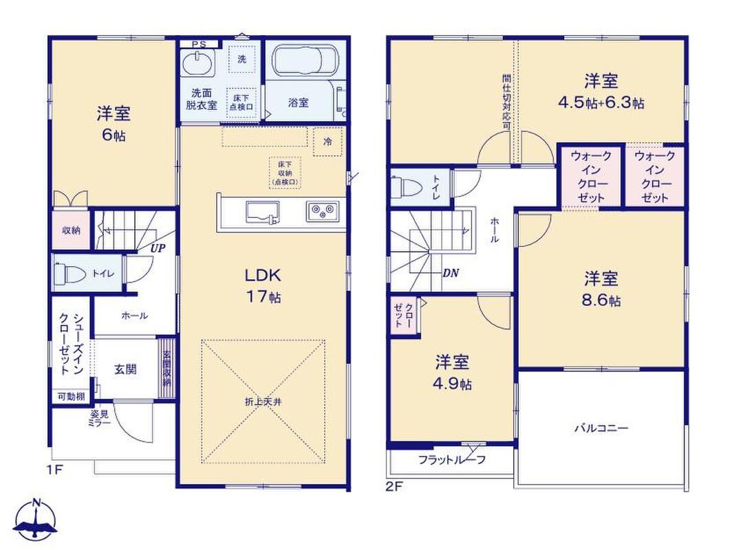 ウォークインクローゼット、シューズインクローク、駐車場2台可(車種による)!