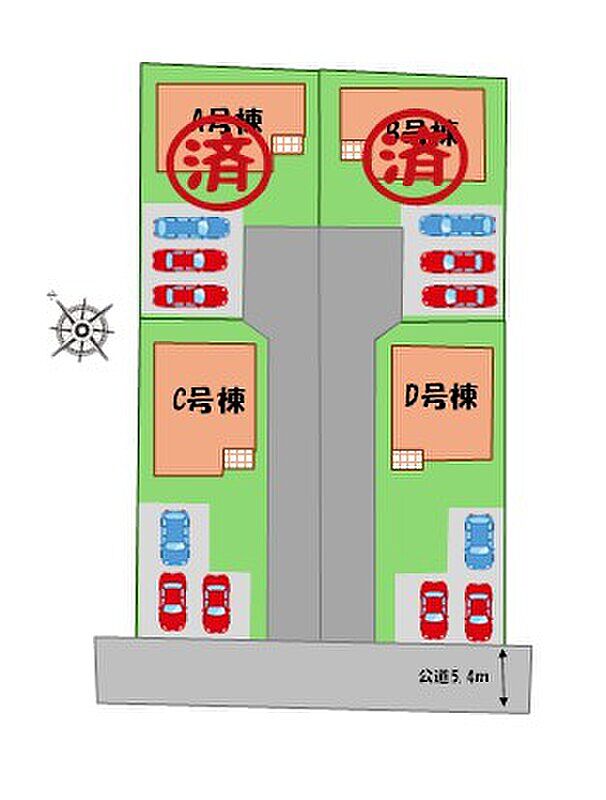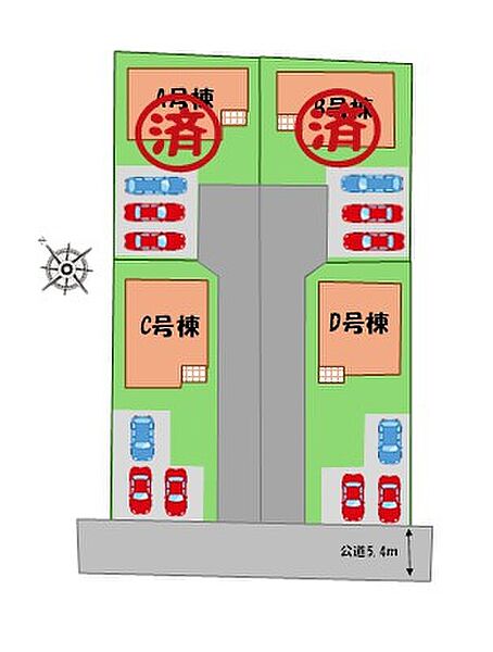 | 駐車場 | 3台(車種による) | 道路の幅員 | 道路幅:5.4m、アスファルト舗装、南側、公道 |