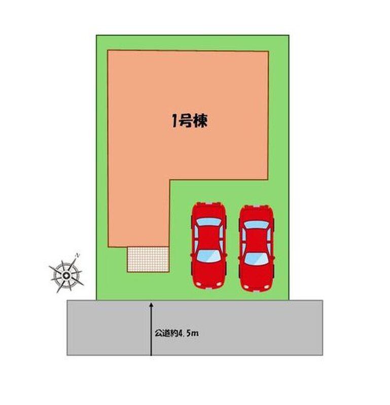 | 駐車場 | 2台(車種による) | 道路の幅員 | 道路幅:4.5m、アスファルト舗装、南東側、公道 |