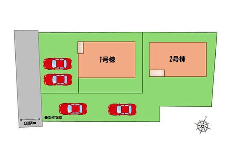| 駐車場 | 2台(※車種による) | 道路の幅員 | 道路幅:4m、アスファルト舗装、西側、公道 |