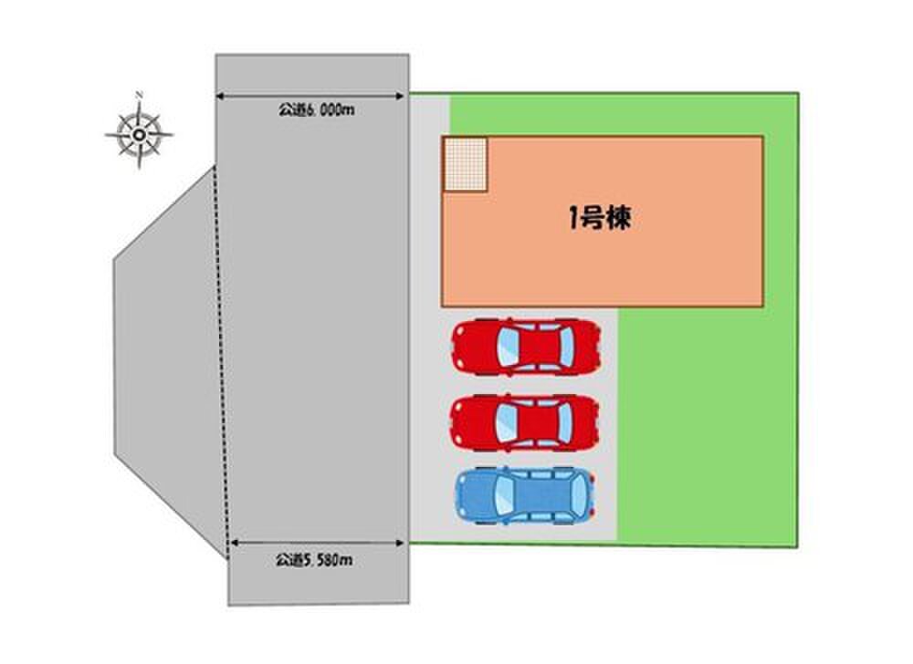 | 駐車場 | 3台(車種による) | 道路の幅員 | 道路幅:5.5m~6m、アスファルト舗装、西側、公道 |