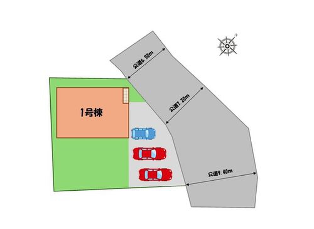 | 駐車場 | 2台 ~ 3台(車種による) | 道路の幅員 | 道路幅:6.5m、アスファルト舗装、北東側、公道 |