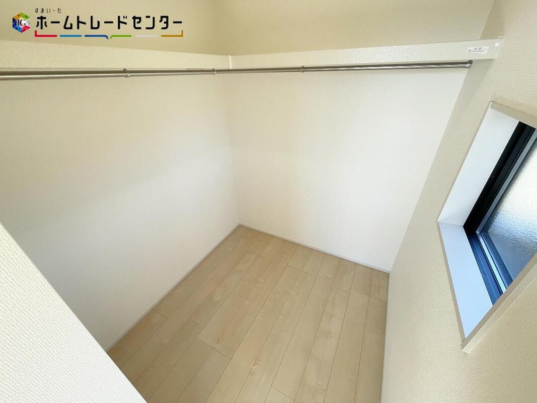 コートハンガー付きのウォークインクローゼット!大容量ですので、衣替えのわずらわしさもございません!洋服タンスをしまえるくらいの大きさなので、大物も楽々収納でき、すっきりと綺麗な室内をいつでも保てます!