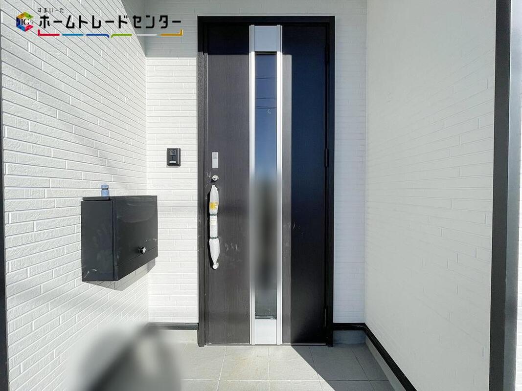 セキュリティを高められるTVモニター付きインターホンが標準装備です!玄関ポーチには屋根がついているので雨でも玄関前で濡れずにお出かけ準備が出来ます。